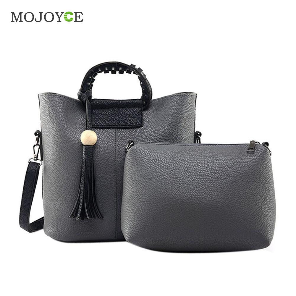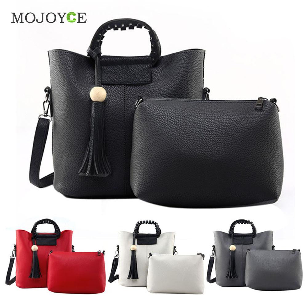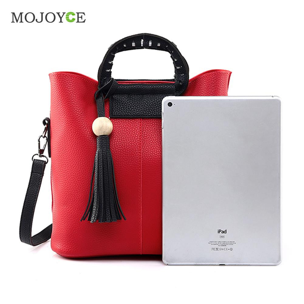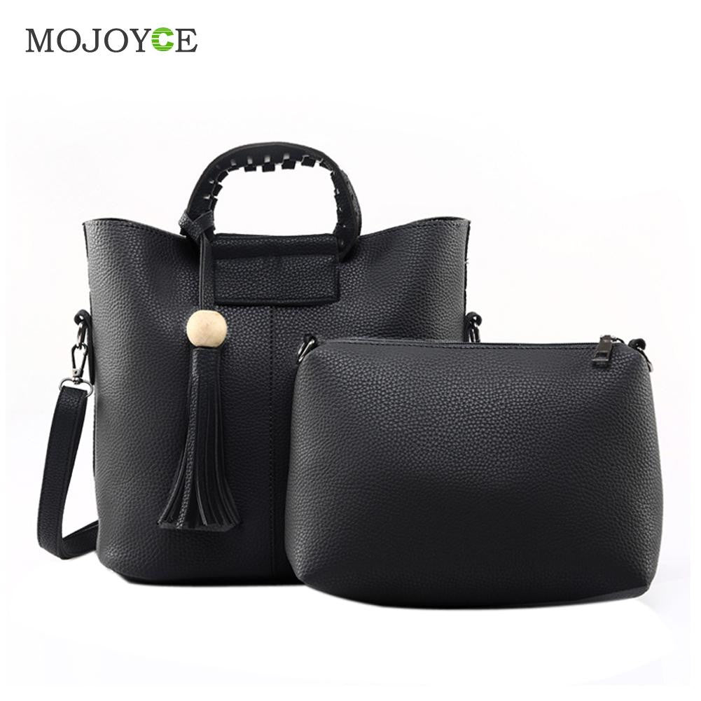 2pcs New Fasion Women Leather Handbag PU Tote Wooden Beads Tassel Shoulder Women Messenger Bags Sac A Main SN9