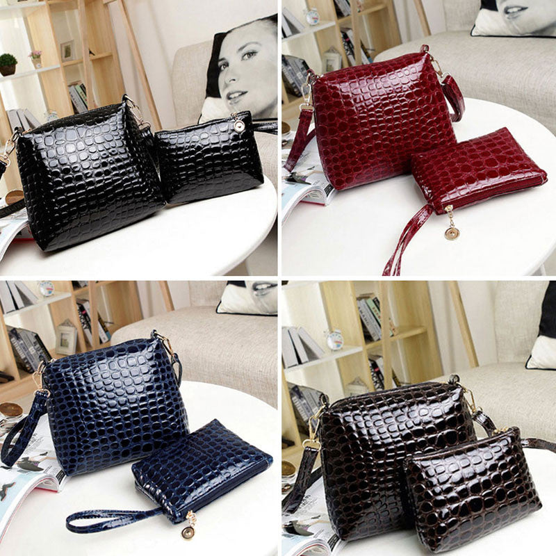 2PCS Women Bags New Fashion Bag Handbags Fashion Handbags Messenger Shoulder Bag Crocodile PU Leather bags SN9