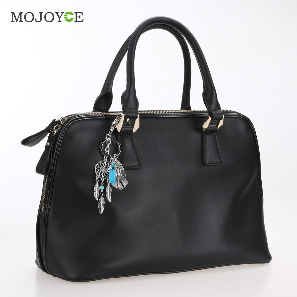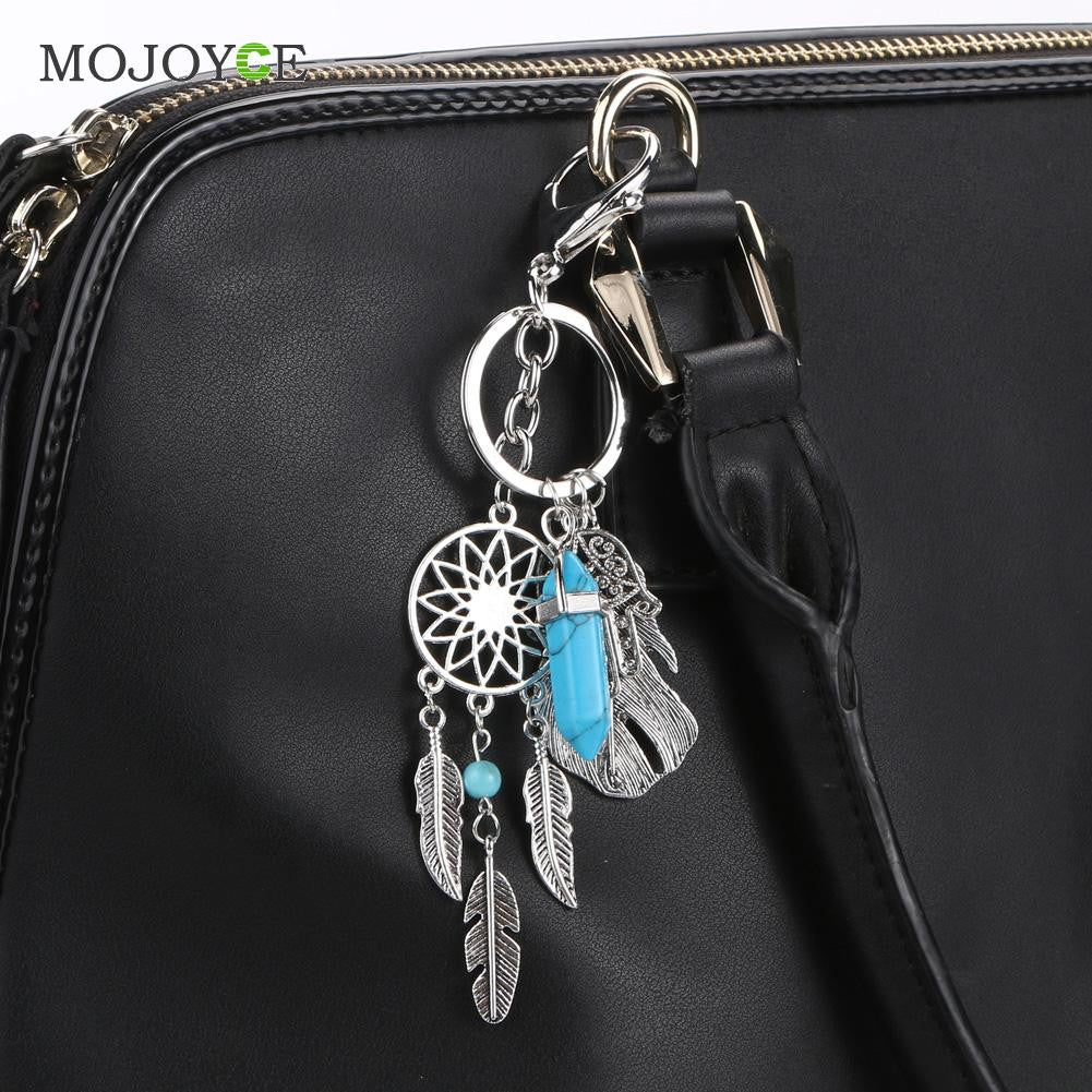 Blue Agate Keyring Fashion Silver Leaves Dreamcatcher Bag Car Keychain Fashion Jewelry SN9
