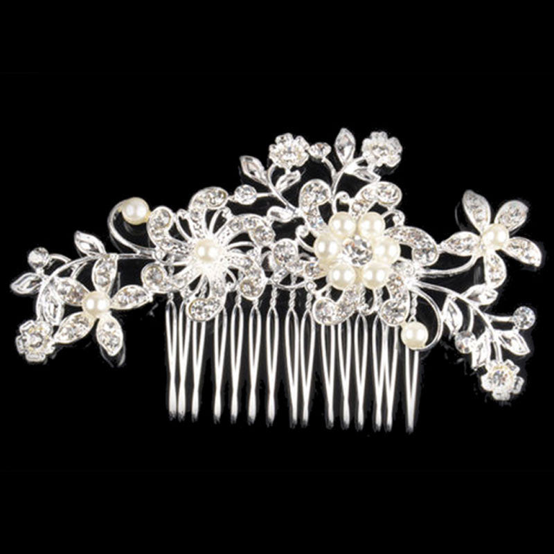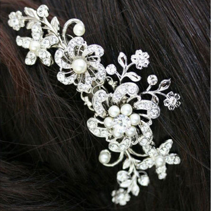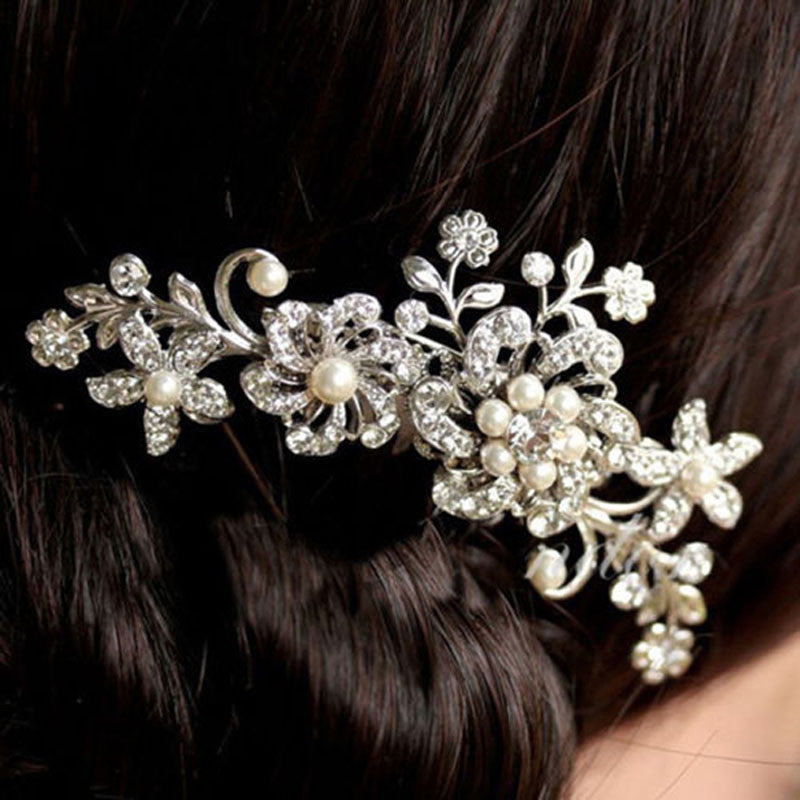 Bridal Wedding Flower Crystal Rhinestone Pearl Hair Clip Comb Pin Diamante Silver Fashion Hair Jewelry CA1T SN9