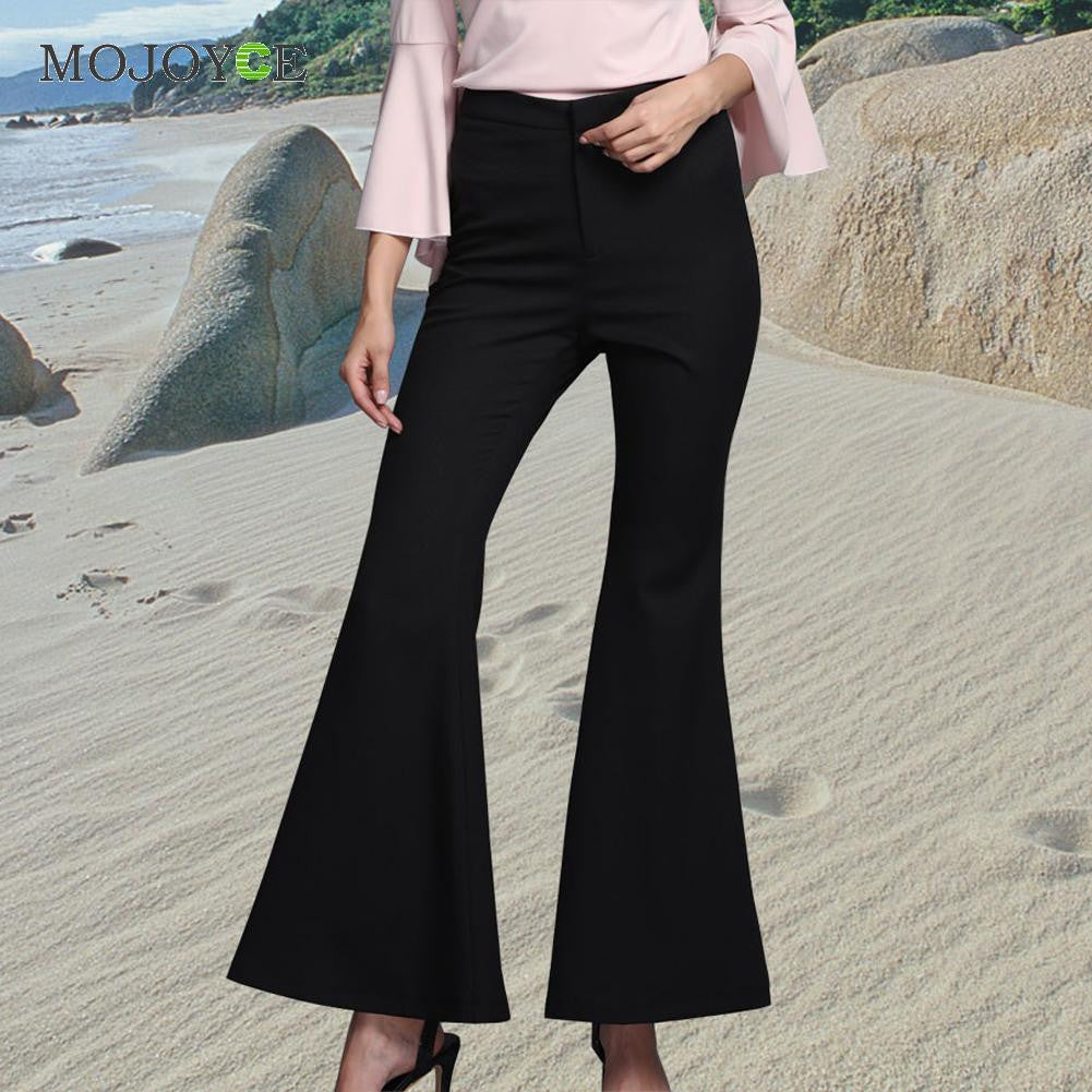 Casual Black Office Lady Pants Women's High Waist Wide Leg Pants Bell-bottoms Flare Pants Trouser SN9