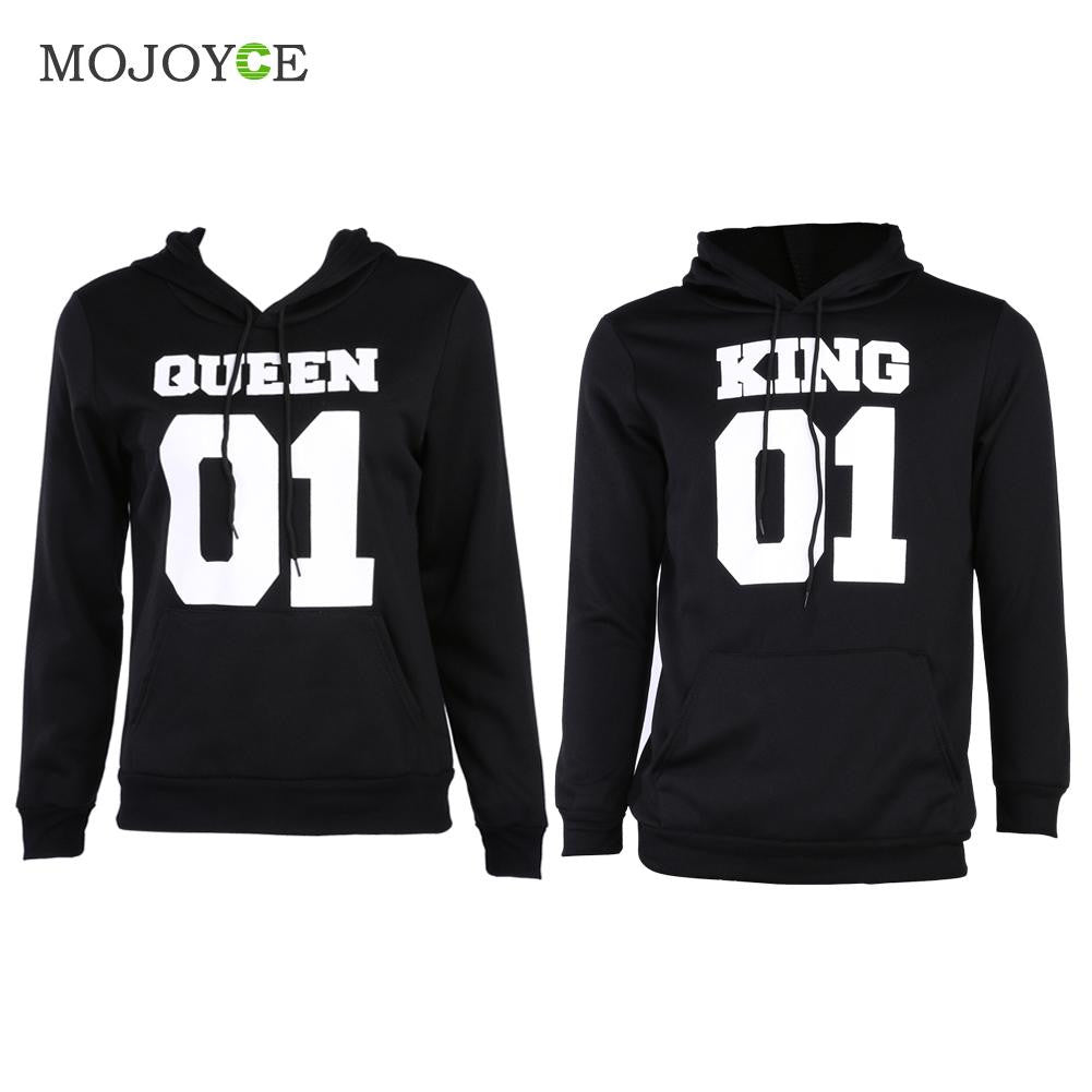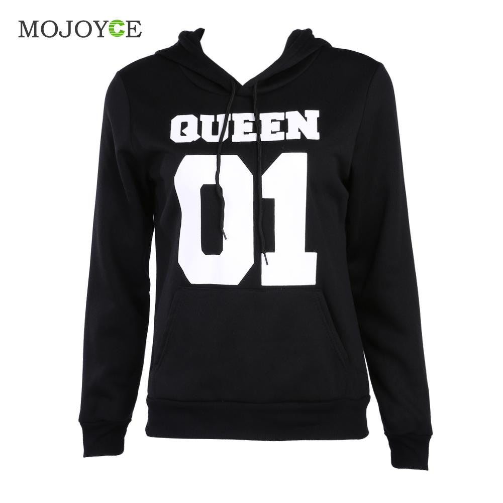 Casual Letter Print Hoodies Women Men Long Sleeve King Queen Printing Loose Sweartershirt Women Men Tops Black Hoodie SN9